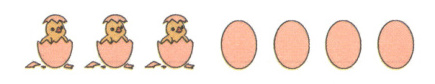 $\begin{cases}2 + 5 \underline{\quad\quad} \\ 2 + 3 □\end{cases}$ $\begin{cases}3 + 4 \underline{\quad\quad} \\ 2 + 4 □\end{cases}$ $\begin{cases}6 - 1 \underline{\quad\quad} \\ 6 - 2 □\end{cases}$