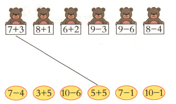$7 + 3$与$5 + 5$相连(都等于$10$);
