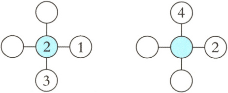 1 在$○$里填上合适的数,使横行、竖行上的三个数相加得数都是$8$。