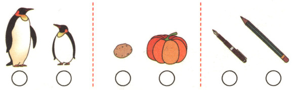 上图中皮球比铁球( 大 小),但它们的材质不同,铁球比皮球( 轻 重)。(圈一圈)