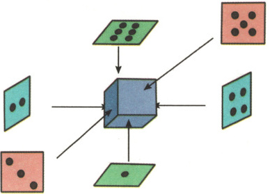 下面是一个骰子六个面的点子图,找一找,六个面的点子数有什么规律?