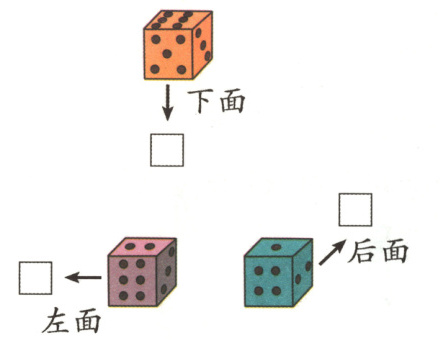 想一想,下面各面的点子数分别是多少呢?在$□$里写出来。