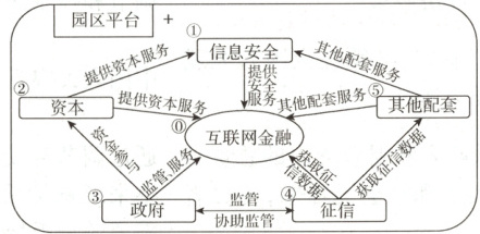 [材料]江苏某工业园区政府为贯彻党的二十大提出的加快建设网络强国、数字中国的目标,结合当地传统经济转型升级的强烈需求,制作了园区政府发展互联网金融的流程图,如下: