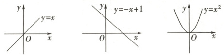 提示:函数y=x的图象从左向右看是上升的,相应函数值随着自变量的增大而增大;函数y=-x+1的图象从左向右看是下降的,相应函数值随着自变量的增大而减小;函数$y=x^{2}$的图象在y轴左侧部分从左到右是下降的,在y轴右侧部分从左到右是上升的,相应函数值随着自变量的增大先减小后增大.