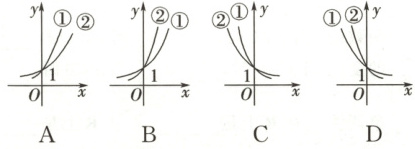 1. 已知$0<m<n<1$,则指数函数①$y = m^{x}$,②$y = n^{x}$的图象为 (