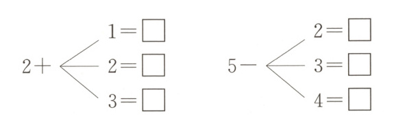 $3 - ( \quad ) = 1$ $( \quad ) - 2 = 3$ $1 + ( \quad ) = 5$