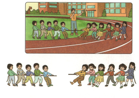 2 在人数多的下面画“√”。