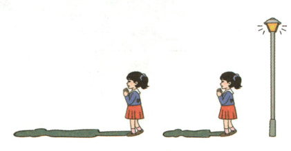 看一看小芳在路灯下的影子,比一比,你有什么发现?