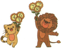 2 猫和狮子交换一朵花,使它们手中花上数的和相等。