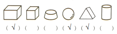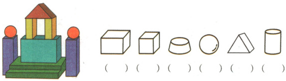 2 下面的物体像什么?它是用哪些形状的积木搭成的?在图形下面的()里画“√”。