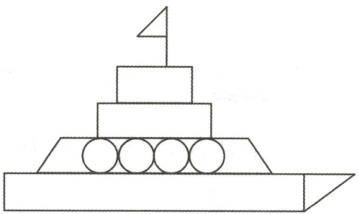下面的拼图是用哪些形状拼成的?在方框里圈一圈。哪种图形最多?把它涂上你喜欢的颜色。