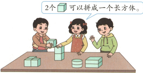 3. 发现:两个同样的正方体拼在一起后得到一个长方体,这个长方体的长是原来正方体边长的 2 倍,宽和高与原来正方体的边长相等。