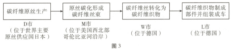 解题思路根据材料可知,原丝碳化环节耗能较大,应靠近能源充足的地区。M市位于美国西北部哥伦比亚河沿岸,区域内地势落差大,河流比降大,水能资源丰富,A项正确;M市在技术和基础设施方面的优势不突出,B、C项错误;M市位于哥伦比亚河沿岸,河流流经区落差大,水流急,航运价值并不高,D项错误。