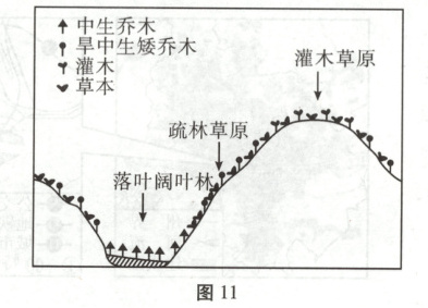 (1)据图 11 分析该区自然植被空间分异的原因。(6 分)