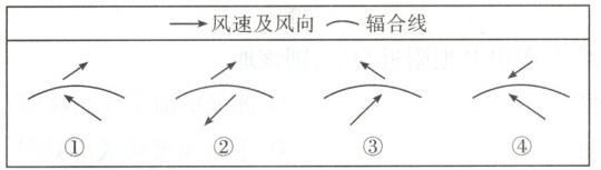 解题思路结合材料和上题分析可知,G地位于北半球,近地面气流辐合上升,故该处受气旋控制,气流逆时针向中心辐合。辐合线附近为低压槽,受地转偏向力的影响(北半球向右偏),气流在辐合线附近形成东南风和西南风,如下图所示。故C项正确。