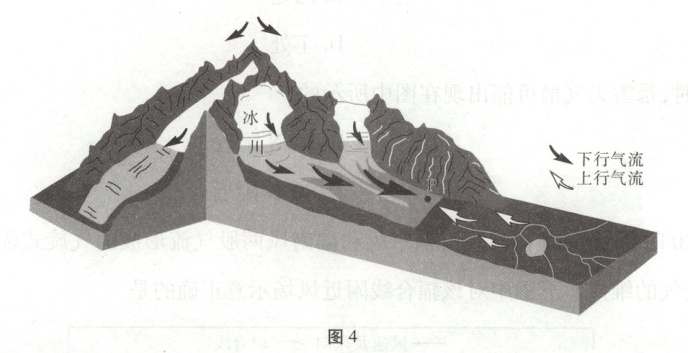[2024·广东卷,13—14T,6分]图4为珠穆朗玛峰南坡某冰川区暖季上、下行气流运动状况。据此完成9—10题。