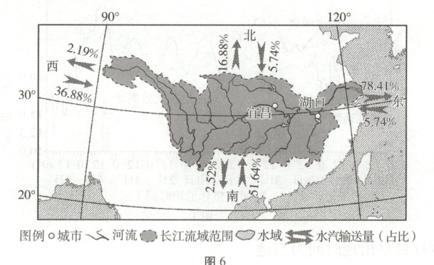 材料一 长江流域的降水主要受夏季风控制,从海陆位置和大气环流看,影响上游和中下游的季风环流不同。从流域东部输出的水汽相对集中在冬春季节,主要受近地面和高空不同气流影响。