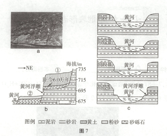 (1)根据图7c所示过程模式,描述黄河浮雕形成的主要外力作用过程。(8分)