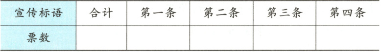 下面是四条宣传标语的投票记录。先完成统计表,再根据统计表回答问题。