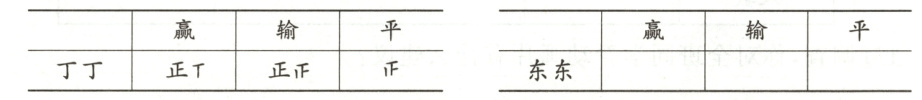 3.丁丁和东东玩“石头、剪刀、布”的游戏,下面左表是丁丁的游戏结果统计表,请用数字在右表中记录东东的游戏情况。