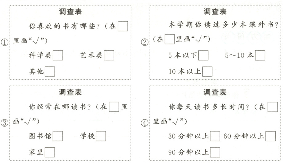 2.为了了解同学们课外阅读图书本数情况,亮亮需要设计调查表来收集数据,下面的调查表中,合适的是(