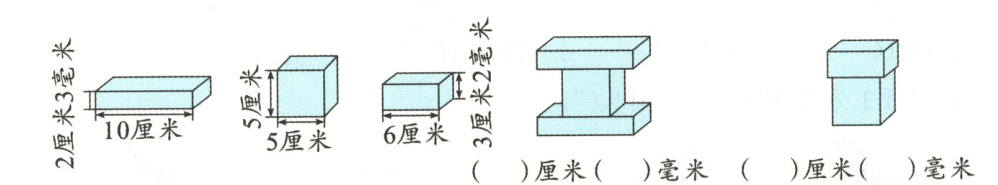 3. 右边的图形是用左边的积木摆出的,算算它们有多高。