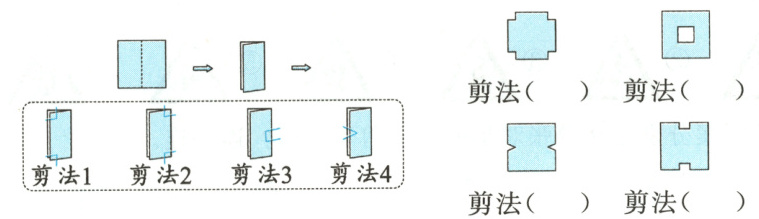 3.【新角度】剪一剪,下面的图形分别是由哪种剪法得到的?