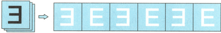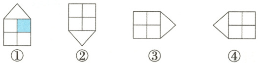 3.下面右边的3个图形都是由①号图形旋转得到的,请你在这3个图形中分别找到涂色方块并涂一涂。