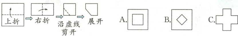 (3)如图,把一个正方形对折两次后沿虚线剪下,展开后可以得到图形(