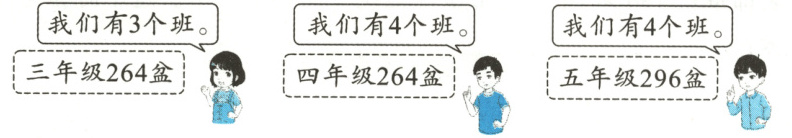3.育才小学开设了种植花卉的劳动课。请算出各年级平均每班浇多少盆花。