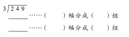 1.东方小学在书画展活动中,将 249 幅蜡笔画分成每 3 幅一组展览,一共分成多少组?根据竖式计算过程,在()里填合适的数。