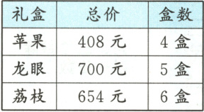 3.408÷4=102(元) 700÷5=140(元) 654÷6=109(元) 140>109>102 龙眼礼盒最贵,苹果礼盒最便宜。