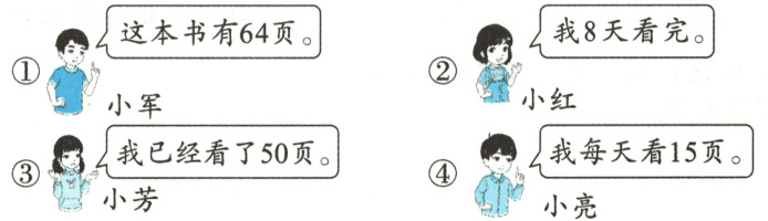 (4)同学们分别阅读同样的一本故事书,要想知道小亮每天比小红多看多少页,需要用到信息(