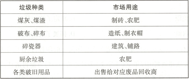 14. 19世纪,英国伦敦大多数生活垃圾都有相应的市场用途(表2),对此,有学者指出,“1800年后,随着工业化、城市化和人口增长……,垃圾被赋予了回收利用的新意义”。这主要表明,当时伦敦