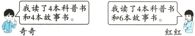 ①红红一共读了多少本书? ②两人一共读了多少本科普书?