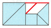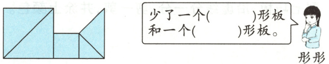 4.彤彤想用一副七巧板拼成一个长方形,但是少了 2 块(如下图),请先补全图形,再填一填。