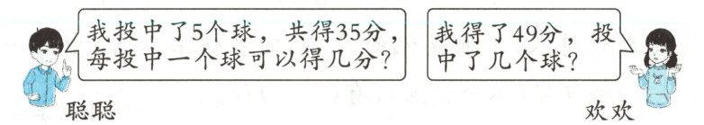我投中了5个球,共得35分,每投中一个球可以得几分? 聪聪