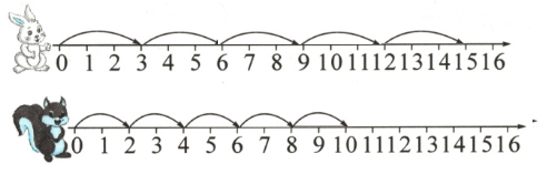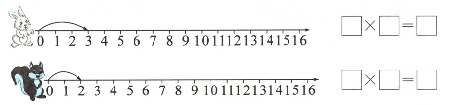 3.兔子和松鼠各跳 5 次,各跳到哪里?画一画,填一填。
