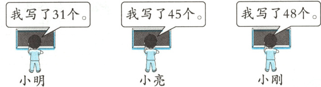(1)小亮比小明多写多少个字? (2)小明比小刚少写多少个字?