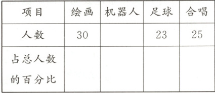 4.六年级学生参加兴趣班的有100人,参加各兴趣班的人数如下表。