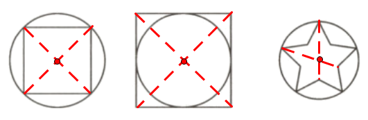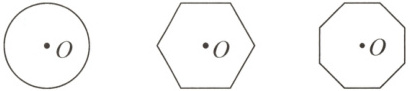 7. 在硬纸板上剪出下面三种图形并与下面对应图形重合,然后沿着中心点 O 转动,你发现了什么?