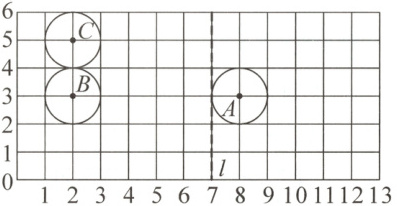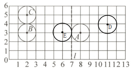 (4) 以虚线 l 为对称轴,画出圆 A 的轴对称图形圆 E。