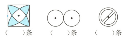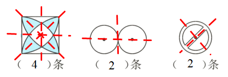 2. 画出下面图形的一条对称轴,并写出对称轴的数量。