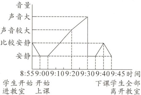 (1)答:在9:05~9:30课堂内的音量在逐渐变大。可能是同学们在进行讨论。(可能出现的情况答案不唯一,合理即可)