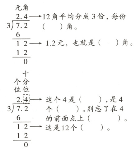 $7.2 ÷ 3 = ( \quad ) ( 元 )$
