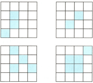4.在每幅图中选择一个方格进行涂色,使它们成为轴对称图形。