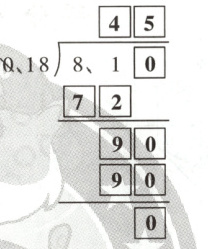 知识迁移(教材 P8“试一试”变式题)有一条8.1 m长的红丝带,每0.18 m截成一段,一共可以截成多少段?