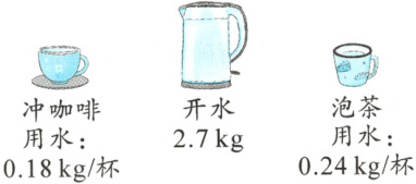 3.这壶开水如果全部用来冲咖啡,最多可以冲多少杯咖啡?如果全部用来泡茶,最多可以泡多少杯茶?