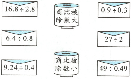 $16.8÷2.8$ 商比被除数大 $0.9÷0.3$