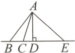 (1)如图,把直线外一点$A$与直线上的点连接起来,量线段$AB$、$AC$、$AD$、$AE$的长度,其中(